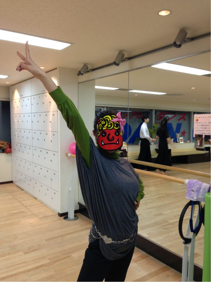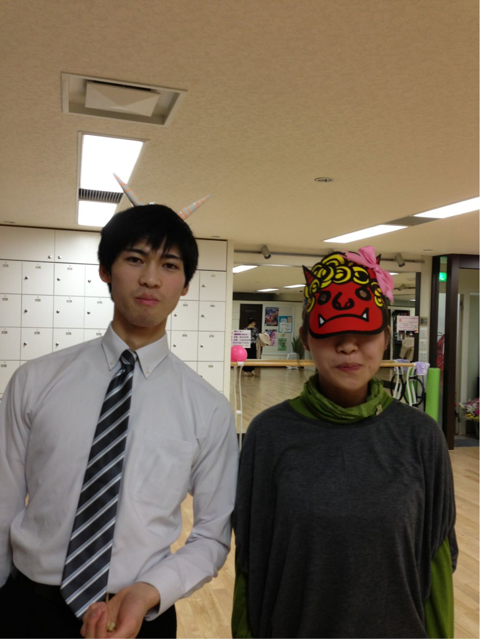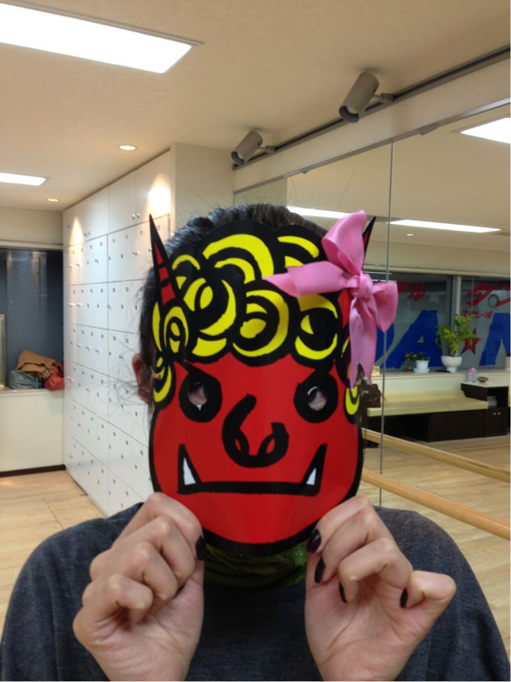 買ってきた鬼の面にリボンつけてあげました*\(^o^)/*