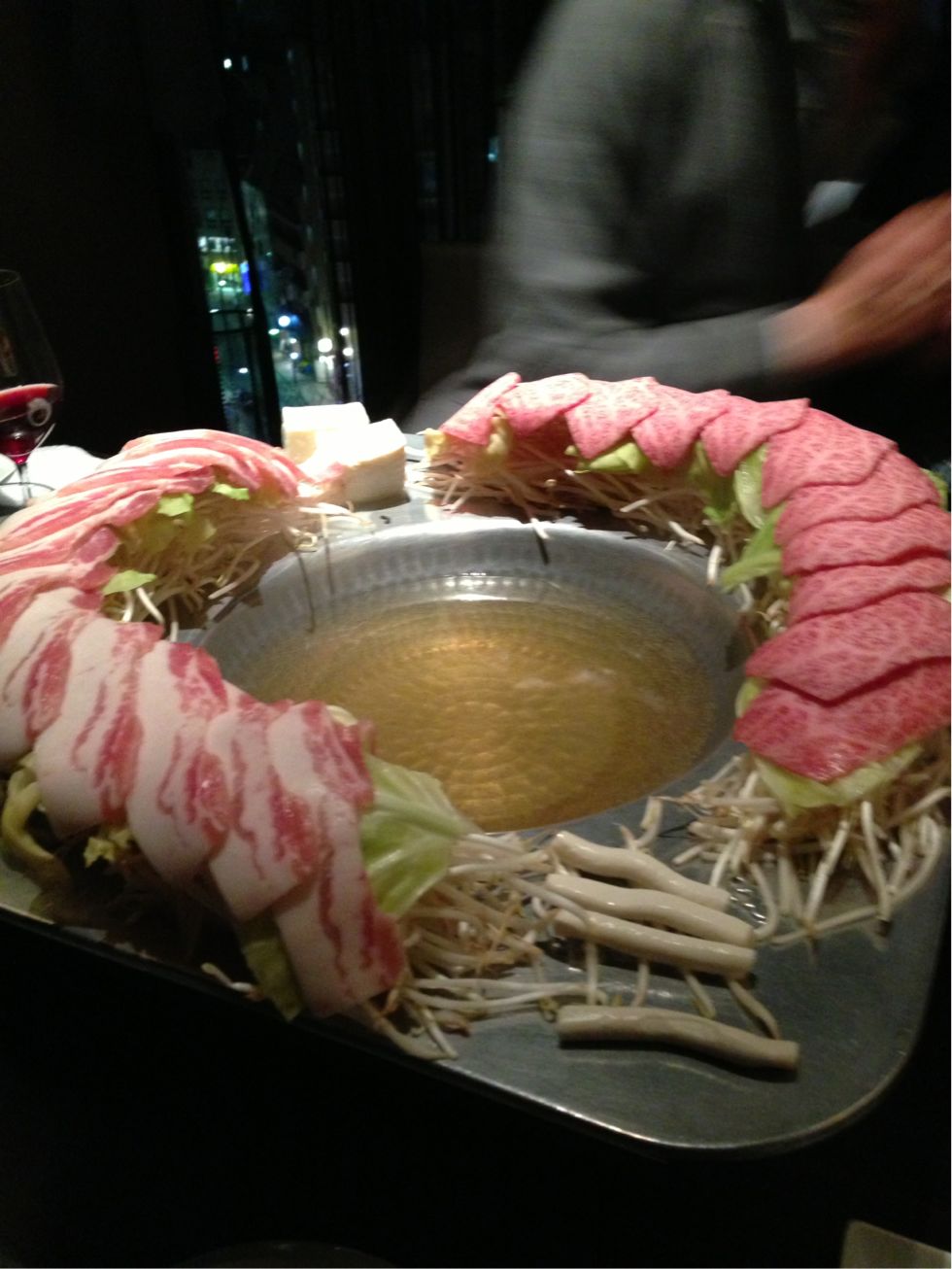 ラウンドされたもやしの上に豚バラとサブトンをぐるりとラウンド〜〜(๑✧◡✧๑)(๑✧◡✧๑)