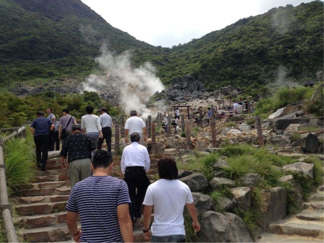 ロープウェイで降りたった地は大涌谷
