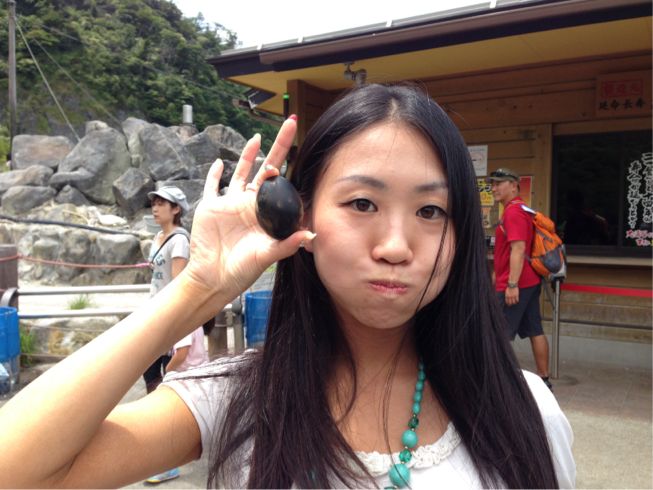 温泉に入れて茹であげる?らしいんだけど、温泉の成分と硫化水素が化学反応して殻が黒くなるんだとか…