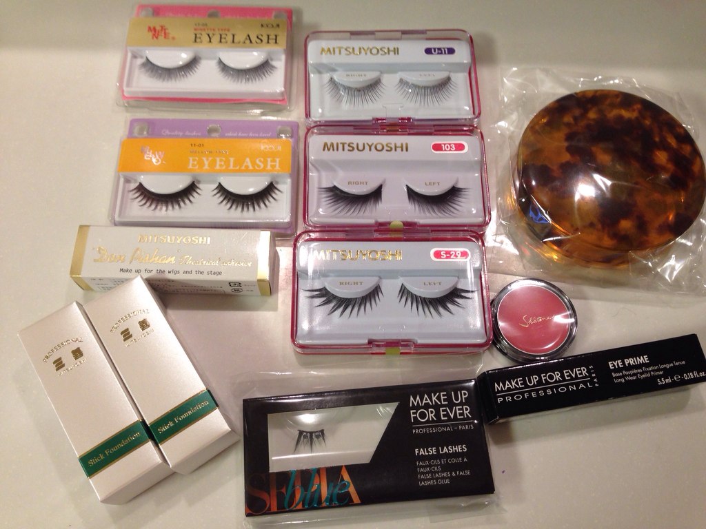生徒さんに付けまつ毛を頼まれたり、自分のドーランがきれていたりしたので