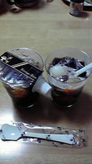 コーヒーゼリーにあずきと白玉が入っている珍しいゼリー。。。