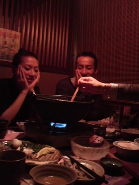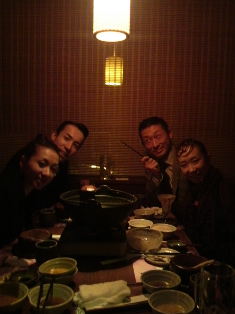 鍋を注文しましたが、アクをせっせととる成竹先生を見て、新鞍先生は「鍋奉行というか悪(アク)大官ですね」とカッコいい顔からは想像出来ないダジャレを言い放っていました グッ!! ( ̄ε ̄〃)b