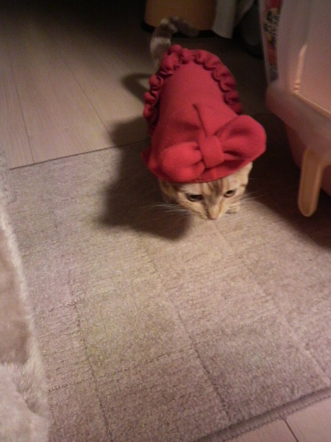 赤いフード付きのお洋服です♪