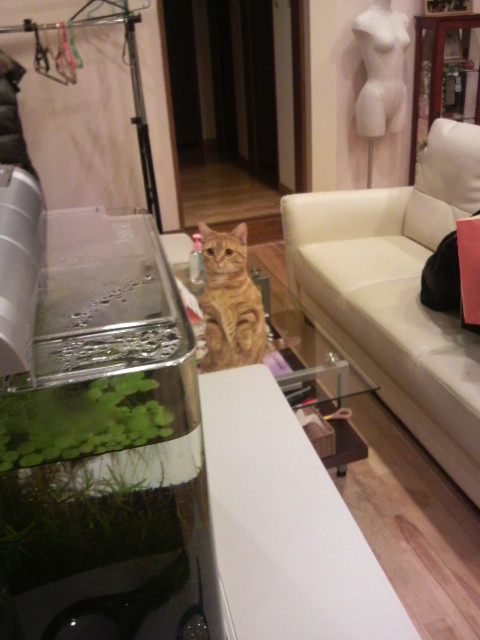 またもやメルはスタジオの水槽(小)に興味津々です(^o^;)
