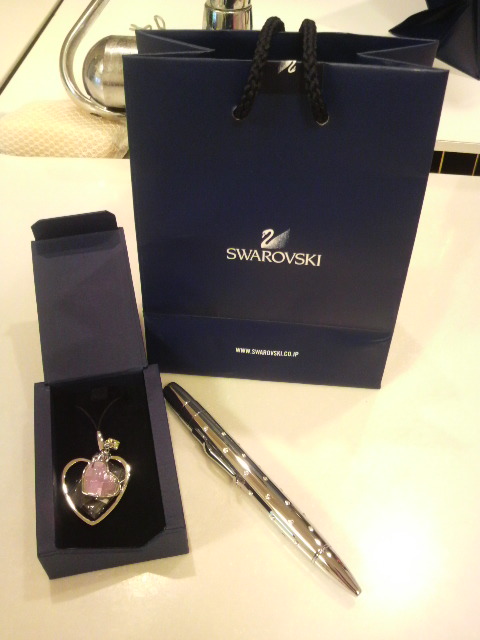 お母さんからはスワロフスキーのストラップとボールペン