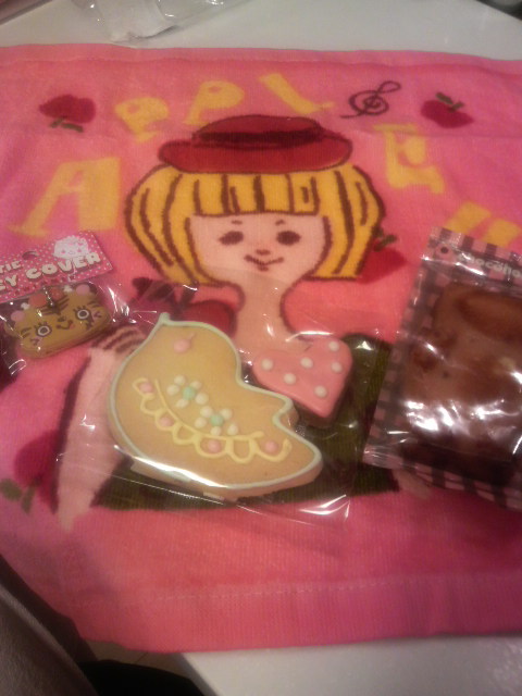 りんごちゃんから、ハンドタオルとお菓子ときゃわゆい猫のストラップ