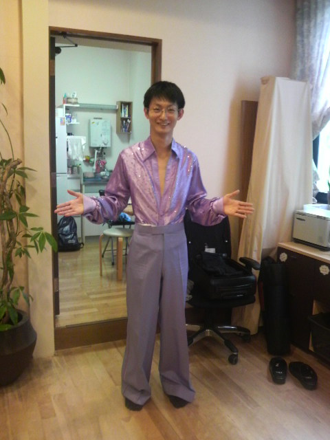 ノービスラテンに出場する翔里先生に成竹先生の衣装着せてみました。