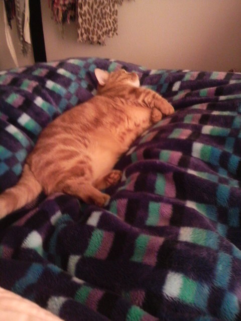 我が家のベッドにトドが一匹横たわっています。。。