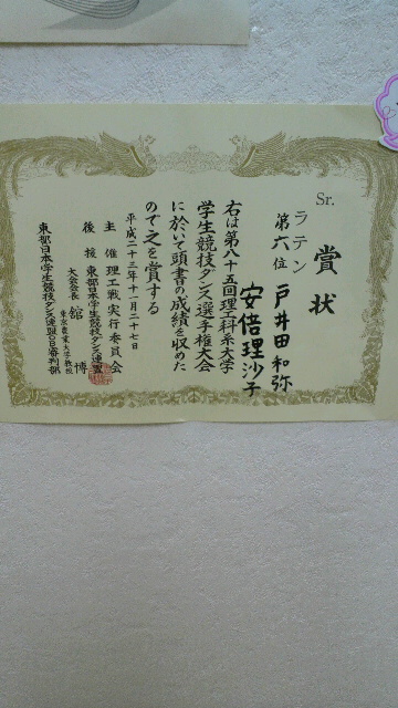 学生でレッスンに来ている首都大学東京2年生の戸井田&りさこが理工戦で総合6位に入賞したそうです