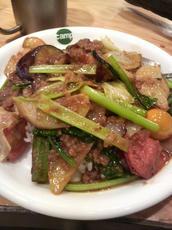 、小松菜?ちなみにお肉は挽き肉でした。